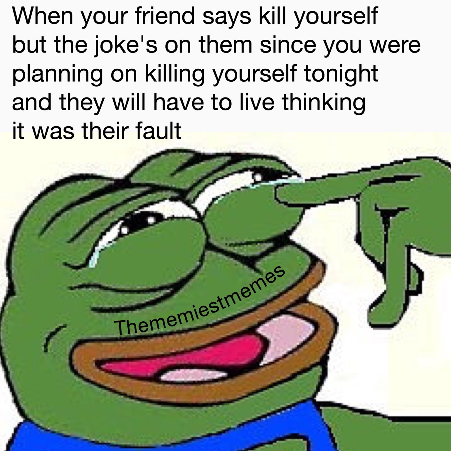 Be yourself meme pepe. Caption a meme or image make a gif make a chart make a demotivational flip through images. Pepe the frog is a cartoon character that has become a popular internet meme often referred to as the sad frog meme by people unfamiliar with the name of the character. Pepe the frog ˈ p ɛ p eɪ is an internet meme consisting of a green anthropomorphic frog with a humanoid body. Unfornutaley this meme s creator had a panic attack over nothing. By 2015 it had become one of the most popular memes used on 4chan and tumblr. Dec 28 2019 explore tameka bussey s board pepe the frog followed by 136 people on pinterest. Easily add text to images or memes.