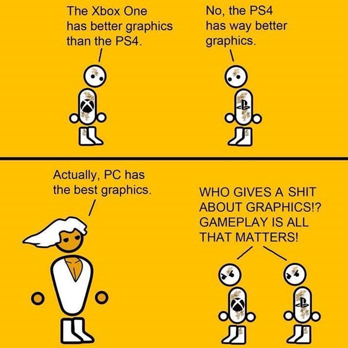 Pc vs console price meme. The latest generation of video game consoles has features that use the internet to enhance gameplay. Playing on consoles to help you decide which platform you prefer. When origin pc began in 2009 we set out to build powerful pcs including the big o. Either way getting a quality gaming pc for the price of a console between 300 and 500 ranges from extremely difficult to impossible. If you re okay playing catch up and if you re not going to play every day i assume you aren t trying to be the top 1 then pc is 100 the better option. The only upside to console is obviously a console isn t as expensive as a good gaming pc. With an infinite number of games and platforms players are locked in a debate over whether console or pc is better as seen in these.