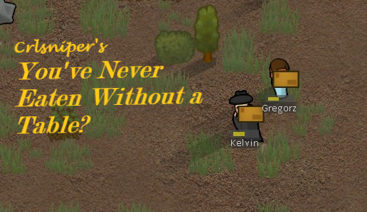 Rimworld ate without table meme. I have watched them for 10 15 minute stretches and they always eat their meal at the table. So i ve been playing rimworld for a long time. Do you see a lovely picnic. But as soon as i turn my attention somewhere else and come back to them the debuff shows up. This was done for potential compability issues but in game it shouldn t make any difference to the user. End tables are a type of furniture which slightly enhances the comfort of any human bed or bedroll except a sleeping spot to work it must be placed orthogonally adjacent to the head of the bed where the pillow is visible. This mod simply removes or reduces the debuff when a colonist eats without a table that s it.